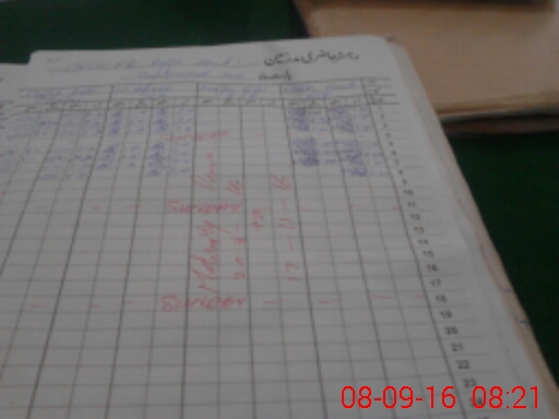 | CNIC | Full Name | Designation | R/C | Absence During Last Calender Month |