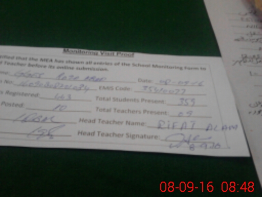 | Attendance Register | Head Teacher | MEA with School | Visit Proof |
