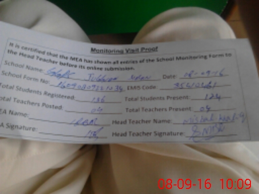 | Certified that this School was Inspected by the Undersigned MEA/DMO Today and the Information Stated Above is as Per Record. | |||||