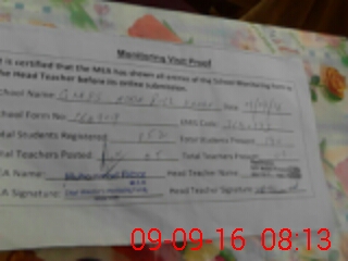 | Attendance Register | Head Teacher | MEA with School | Visit Proof |