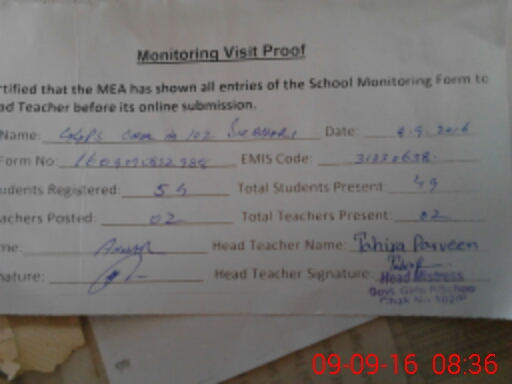 | EMIS Code: 31330638 | Name of School: GGPS 102/P BASTI SERBOHRI | |||