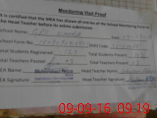 | Attendance Register | Head Teacher | MEA with School | Visit Proof |