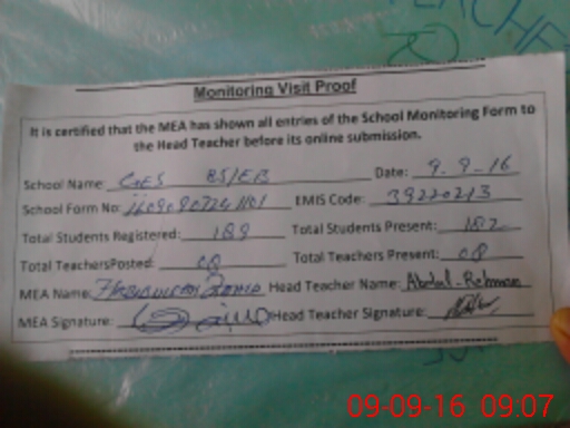 | Certified that this School was Inspected by the Undersigned MEA/DMO Today and the Information Stated Above is as Per Record. | |||||