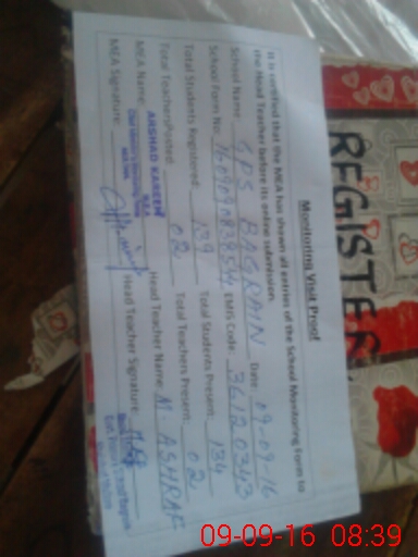 | Attendance Register | Head Teacher | MEA with School | Visit Proof |