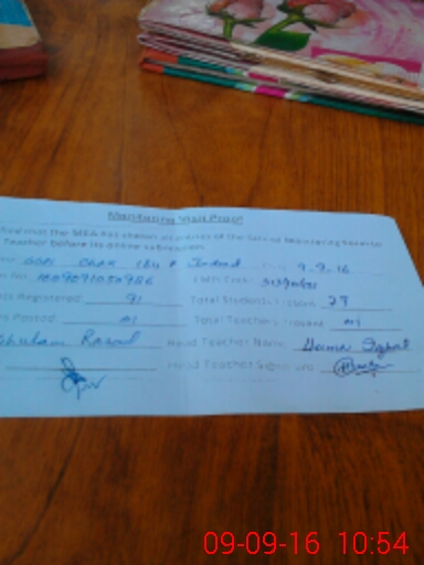 | Attendance Register | Head Teacher | MEA with School | Visit Proof |
