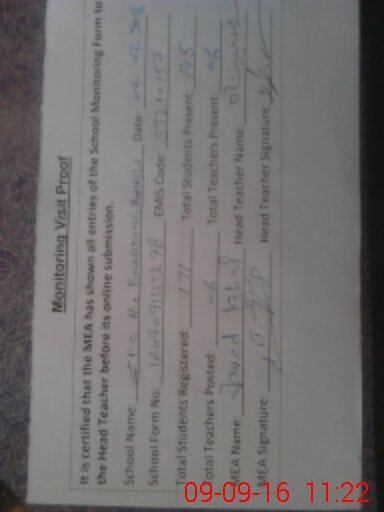 | Name: AN**** ME**** Designation: (School Headmaster's/Headmistress's) HEADMISTRESS Phone/Cell Number: 03**** |