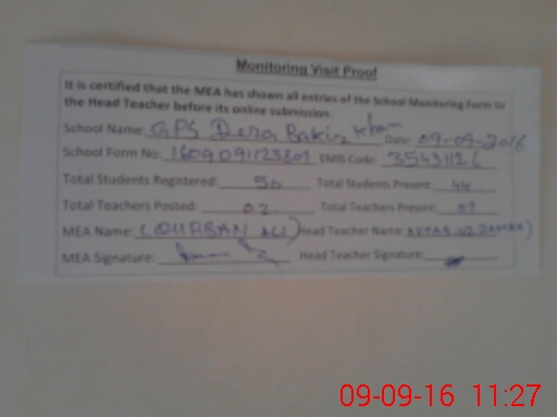 | EMIS Code: 35431126 | Name of School: GPS DERA BAKIR KHAN | |||