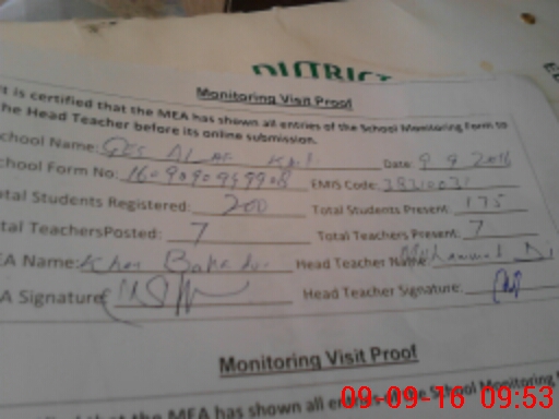 | Attendance Register | Head Teacher | MEA with School | Visit Proof |