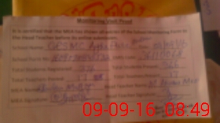 | Attendance Register | Head Teacher | MEA with School | Visit Proof |