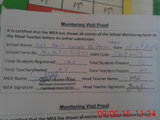 | Certified that this School was Inspected by the Undersigned MEA/DMO Today and the Information Stated Above is as Per Record. | |||||