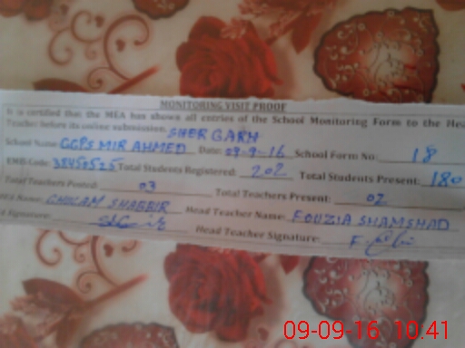 | EMIS Code: 38450525 | Name of School: GGPS MIR AHMAD SHER GHARH | |||