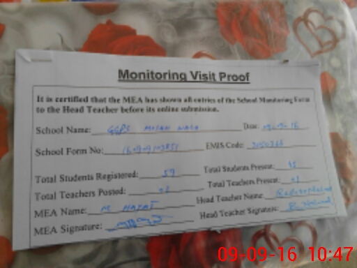 | Certified that this School was Inspected by the Undersigned MEA/DMO Today and the Information Stated Above is as Per Record. | |||||