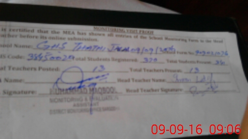 | Certified that this School was Inspected by the Undersigned MEA/DMO Today and the Information Stated Above is as Per Record. | |||||