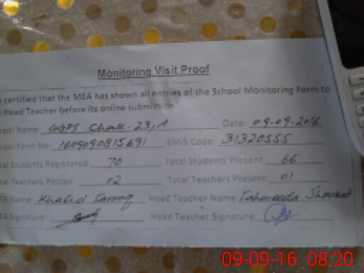 | EMIS Code: 31320555 | Name of School: GGPS CHAK NO 23/A | |||