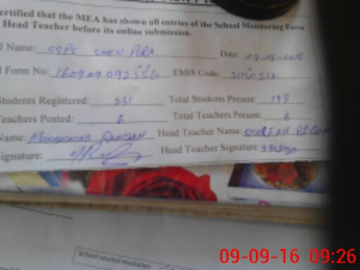 | Attendance Register | Head Teacher | MEA with School | Visit Proof |