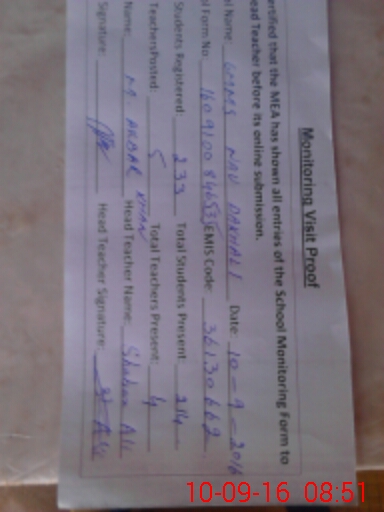 | Certified that this School was Inspected by the Undersigned MEA/DMO Today and the Information Stated Above is as Per Record. | |||||