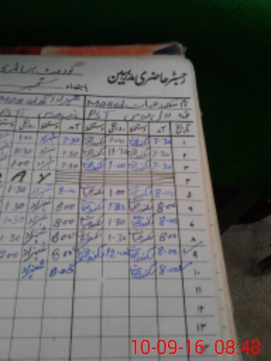 | CNIC | Full Name | Designation | R/C | Absence During Last Calender Month |