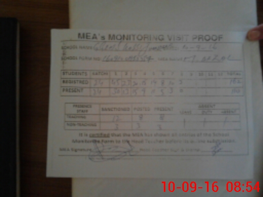 | Attendance Register | Head Teacher | MEA with School | Visit Proof |