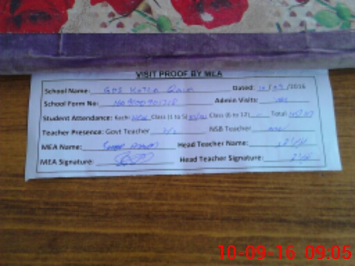 | Attendance Register | Head Teacher | MEA with School | Visit Proof |