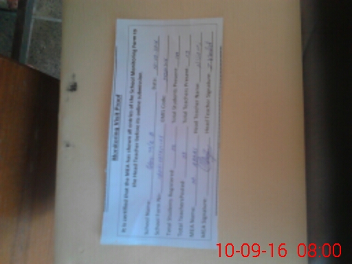 | Monitoring Date: 10-09-2016 | Start Time: 10-09-2016 07:31 AM | End Time: 10-09-2016 08:00 AM | Name of MEA: Mu**** Ab**** | |