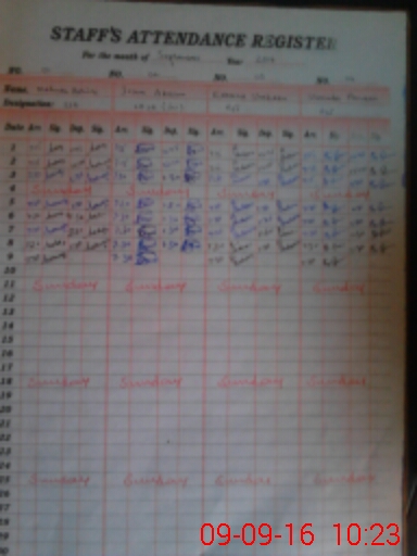 | CNIC | Full Name | Designation | R/C | Absence During Last Calender Month |