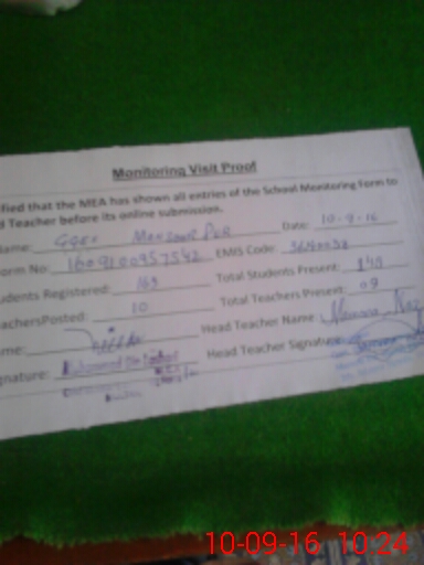 | Certified that this School was Inspected by the Undersigned MEA/DMO Today and the Information Stated Above is as Per Record. | |||||