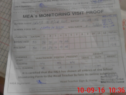 | Certified that this School was Inspected by the Undersigned MEA/DMO Today and the Information Stated Above is as Per Record. | |||||
