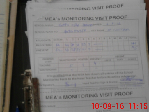 | Attendance Register | Head Teacher | MEA with School | Visit Proof |