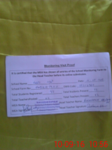| Certified that this School was Inspected by the Undersigned MEA/DMO Today and the Information Stated Above is as Per Record. | |||||