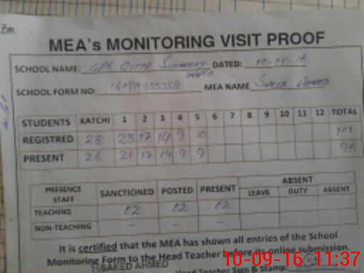 | Attendance Register | Head Teacher | MEA with School | Visit Proof |