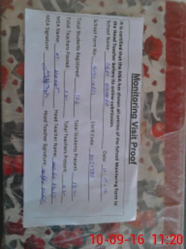 | Attendance Register | Head Teacher | MEA with School | Visit Proof |