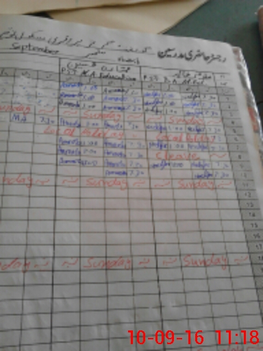 | CNIC | Full Name | Designation | R/C | Absence During Last Calender Month |