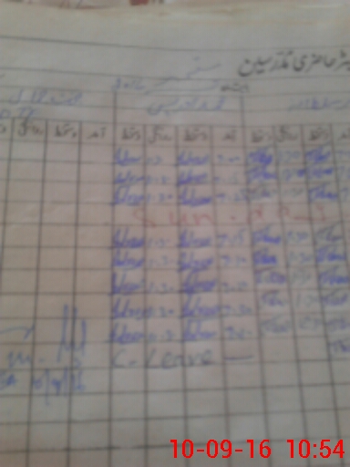 | CNIC | Full Name | Designation | R/C | Absence During Last Calender Month |