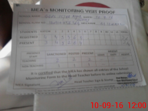| Attendance Register | Head Teacher | MEA with School | Visit Proof |