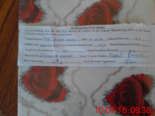 | Attendance Register | Head Teacher | MEA with School | Visit Proof |