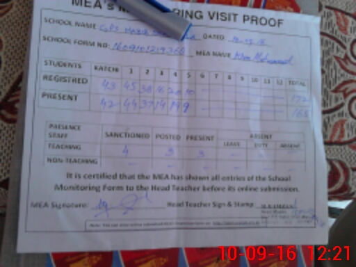 | Certified that this School was Inspected by the Undersigned MEA/DMO Today and the Information Stated Above is as Per Record. | |||||