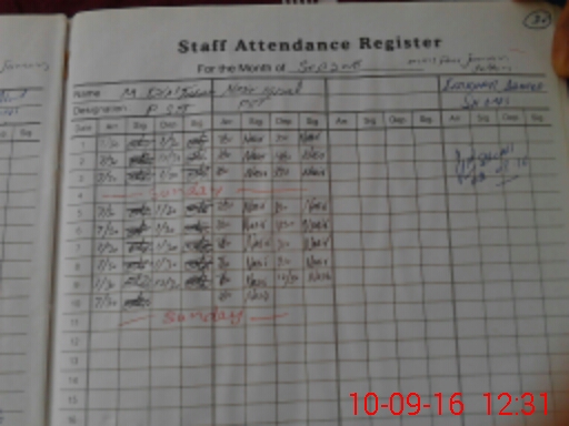 | CNIC | Full Name | Designation | R/C | Absence During Last Calender Month |