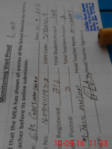 | Attendance Register | Head Teacher | MEA with School | Visit Proof |