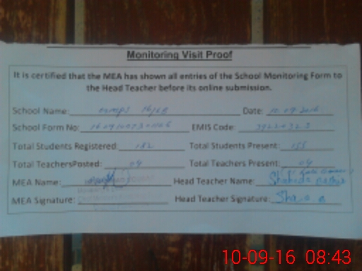 | Certified that this School was Inspected by the Undersigned MEA/DMO Today and the Information Stated Above is as Per Record. | |||||