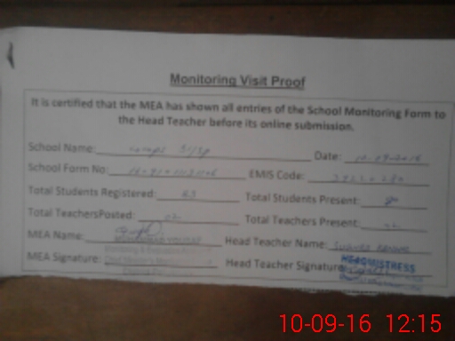 | Certified that this School was Inspected by the Undersigned MEA/DMO Today and the Information Stated Above is as Per Record. | |||||