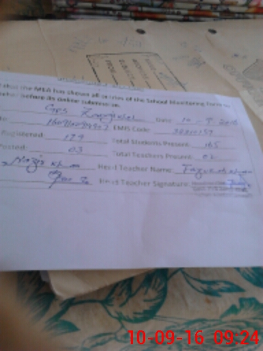 | EMIS Code: 38310157 | Name of School: GPS ZANGHI KHEL | |||