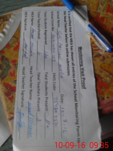 | Attendance Register | Head Teacher | MEA with School | Visit Proof |