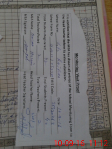 | Attendance Register | Head Teacher | MEA with School | Visit Proof |