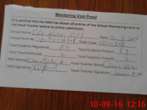 | Certified that this School was Inspected by the Undersigned MEA/DMO Today and the Information Stated Above is as Per Record. | |||||
