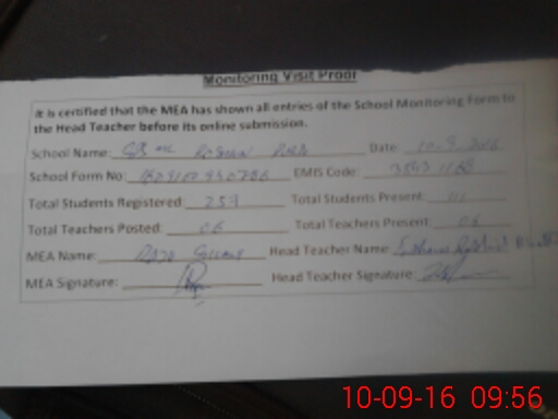 | EMIS Code: 35431168 | Name of School: GPS MC ROSHAN PURA | |||