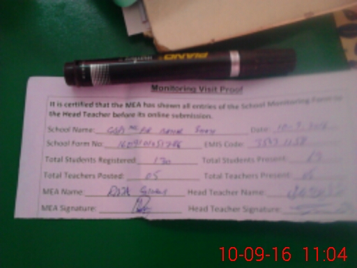 | Certified that this School was Inspected by the Undersigned MEA/DMO Today and the Information Stated Above is as Per Record. | |||||