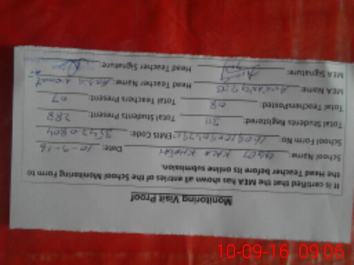 | Certified that this School was Inspected by the Undersigned MEA/DMO Today and the Information Stated Above is as Per Record. | |||||