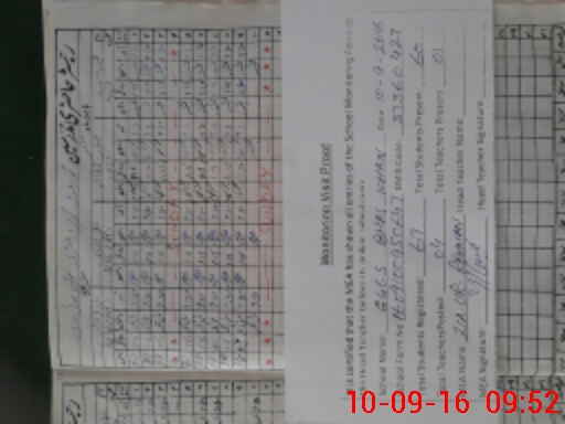 | Remarks (Use Separate Page if Required): I started visit to this school at 8 05 am The classrooms were locked one teacher named SHUMAILA KOSAR SESE PET was PRESENT rest all three teachers were absent The Head Teacher SAMINA SAEED EST ET arrived at about 8 40 am with the keys of classrooms and then classrooms opened during this half an hour the students sat on ground in the sun I asked HM politely please fill attendance column by the time you arrived but she remained the attendance column without time Teacher UZMA SHAHEEN AT arrived at 9 30 am All the thee teachers and one class four considered as ABSENT according to SOP class four SHABANA KOSAR arrived at about 9 00 am Form D3 not shown HM denied to sign visit proof by saying that if I am absent why can i sign | |||||