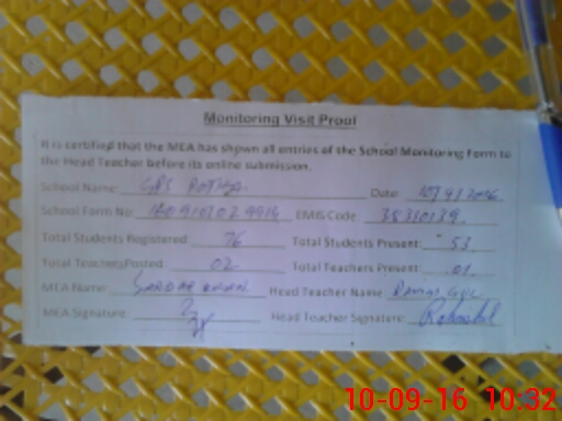 | Attendance Register | Head Teacher | MEA with School | Visit Proof |