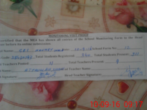 | EMIS Code: 38430193 | Name of School: GHS MANKEY WALA | |||